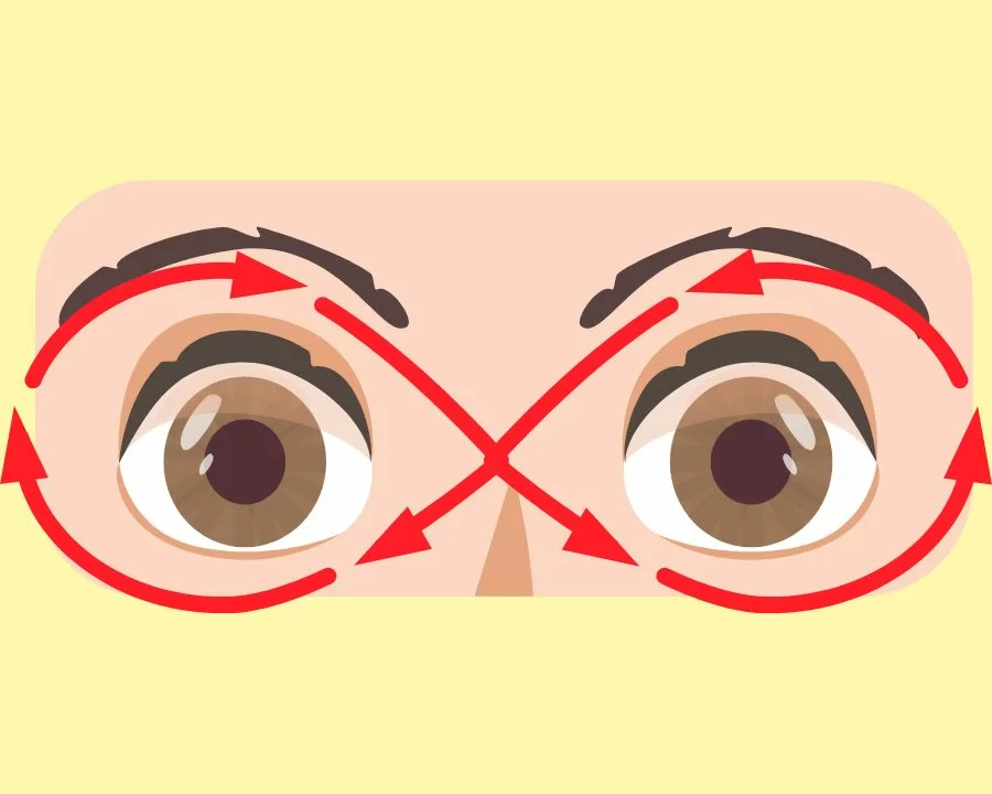 Nhắm mắt lại và từ từ xoay mắt theo chiều kim đồng hồ, sau đó đổi hướng ngược lại. Mỗi vòng xoay nên kéo dài khoảng 5 giây và lặp lại từ 5 – 10 lần. Bài tập cho mắt cận này không chỉ giúp tăng cường sự linh hoạt mà còn kích thích lưu thông máu đến mắt.